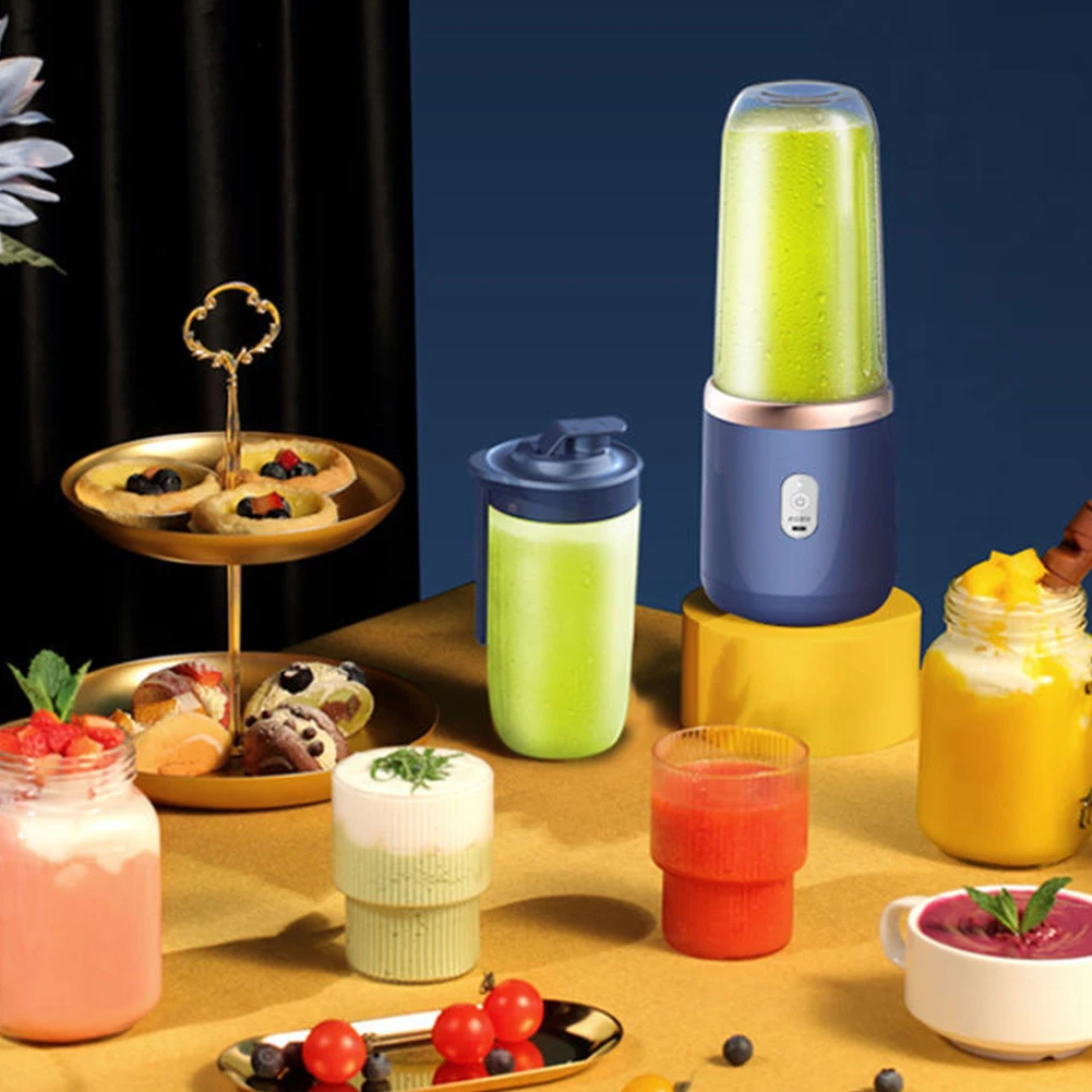 2. تصميم صديق للسفر:صُمم خلاط العصير المحمول الخاص بنا مع إمكانية حمله في الاعتبار ، يتميز بتصميم أنيق موفر للمساحة ، وهو مثالي للتغذية أثناء التنقل ، مما يتيح لك الاستمتاع بالعصائر الطازجة أثناء السفر ، وفي العمل ، أو أي نشاط خارجي.